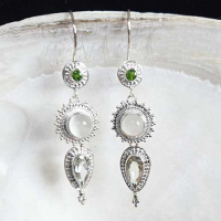 Chrome Diopside, Moonstone, and Green Amethyst Latch-Back Earrings