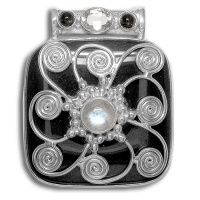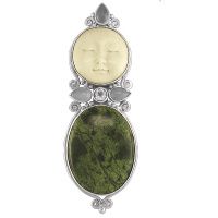 Goddess Pin-Pendant with Russian Serpentine, White Topaz & Moonstone