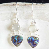 Sterling Silver Rainbow Moonstone and Iolite Latch Back Earrings