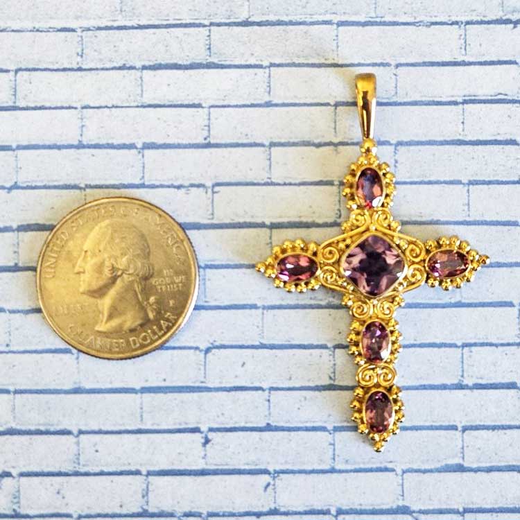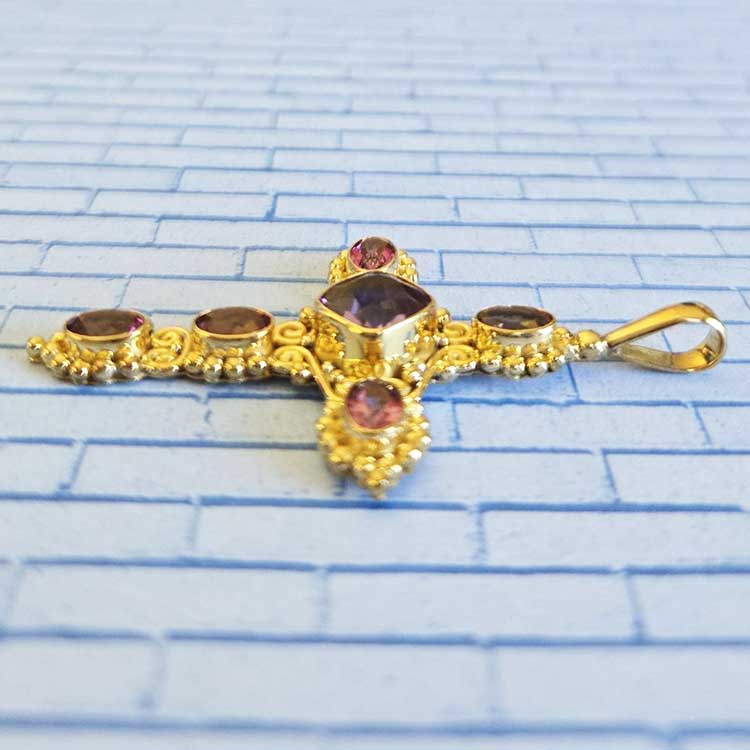 18K GOLD Goddess Pendant with Pink Druzy, Amethyst and Pink Tourmaline