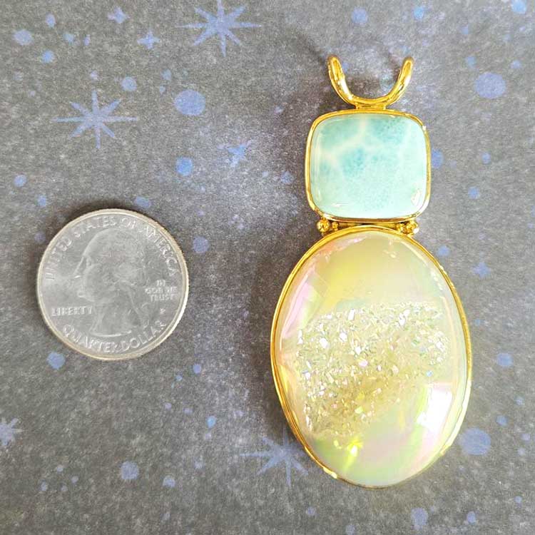 18K GOLD Goddess Pendant with Pink Druzy, Amethyst and Pink Tourmaline