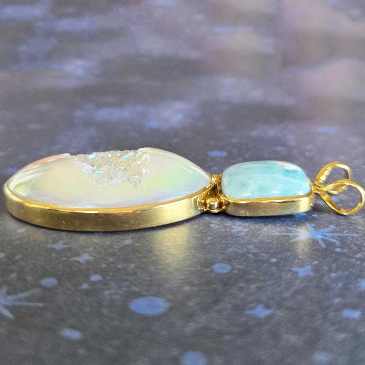 18K GOLD Goddess Pendant with Sapphire, Blue Opal, Emerald and Ruby