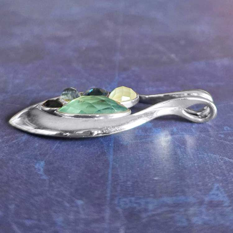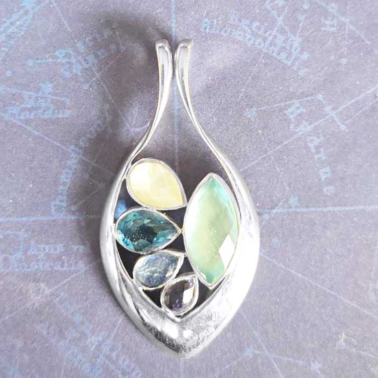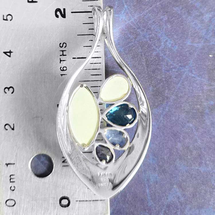 One of a Kind Sterling Silver Mother of Parl Backed Aqua Blue Quartz Pendant