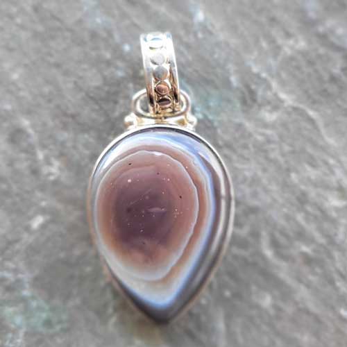 Botswana Agate is thought to bring good luck! The "eye" formation is also considered to be protective of the wearer!