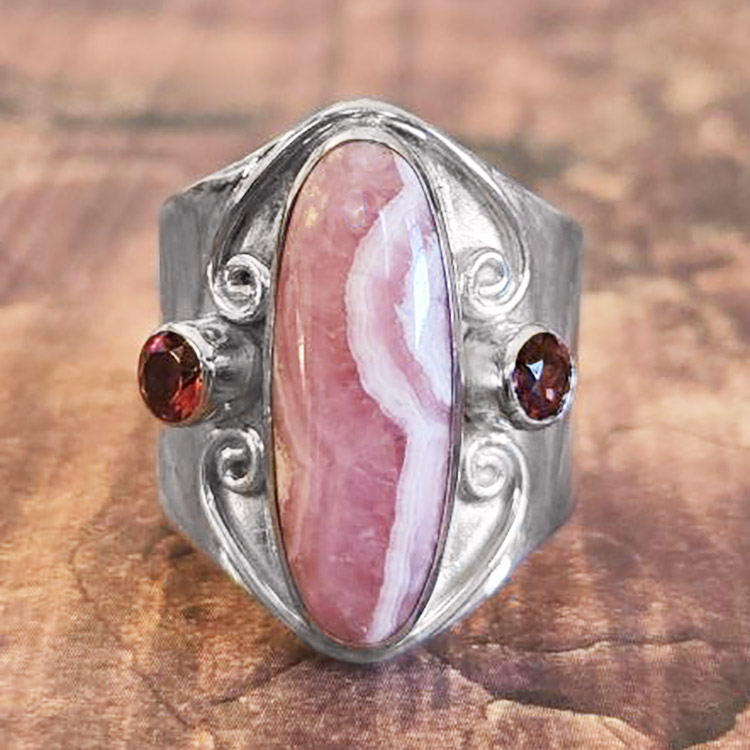 Mother of Pearl Mermaid Pendant with Rhodocrosite, Garnet, and Pink Shell