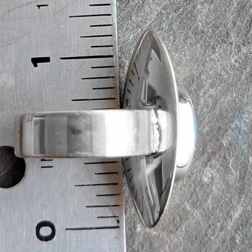 This ring is a one of a kind handmade sample ring! Inlaid stones Malachite (green), Lapis (blue), Carnelian (orange), Turquoise (light blue), Coral (red) and Sugilite (purple) are set in a perfect oval shape in this solid silver ring! This beauty was designed by Marianna and Richard and handmade by Balinese Artisans. The face of the ring is 1 1/8" long and 5/8" wide.